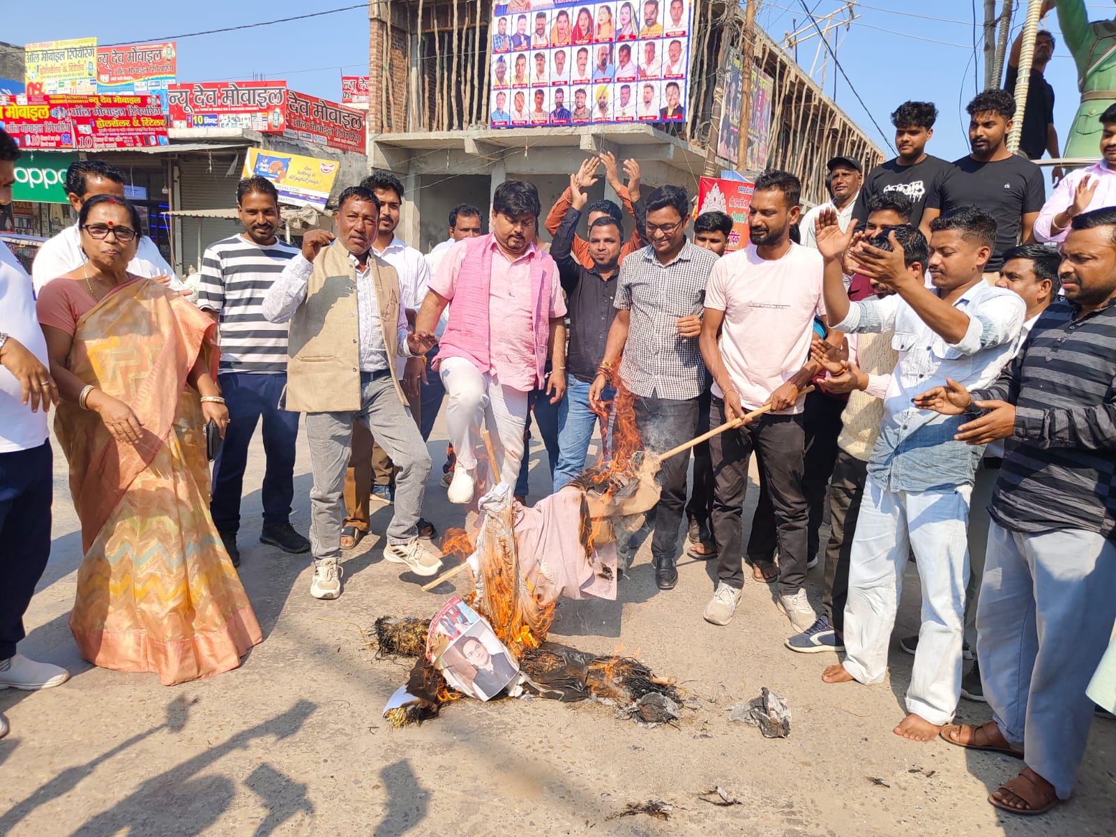 दिनेशपुर । विधानसभा सत्र के दौरानं भाजपा विधायक मुन्ना सिंह चौहान के बयान पर क्षेत्र के बंगाली समाज मे एक बार फिर से रोष फैल गया है । बयान पर बंगाली युवा छात्र संगठन के बैनर तले समाज के तमाम संगठनों ने रोष व्यक्त करते हुए मुन्ना सिंह चौहान और कैबिनेट मंत्री सौरभ बहुगुणा का पुतला फूंका।
