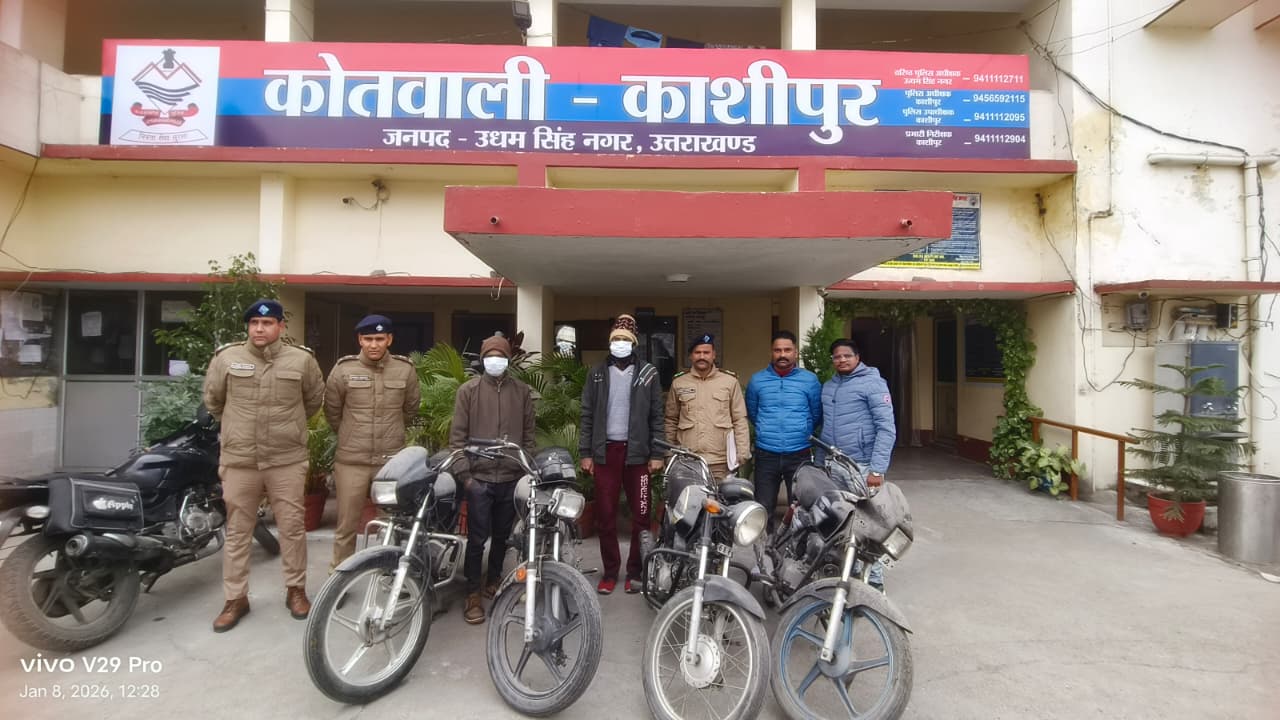 काशीपुर। कोतवाली पुलिस ने दो शातिर बाइक चोरों को गिरफ्तार कर चोरी की गई चार बाइक बरामद करने में सफलता हासिल की है।