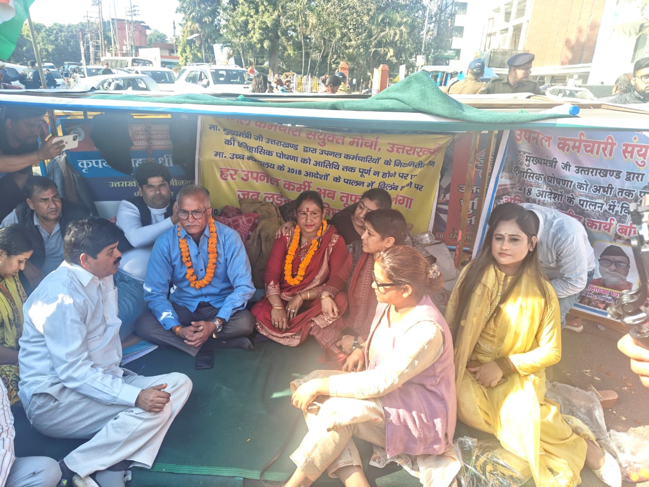 गणेश गोदियाल को बधाई देने पहुंचीं काशीपुर महिला कांग्रेस अध्यक्ष श्रीमती पूजा सिंह ने धरने में सहभागिता निभाई