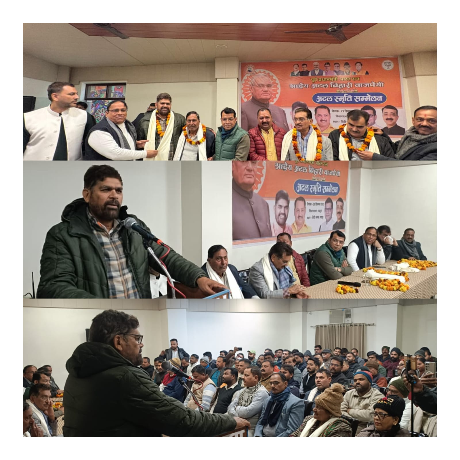 वही दूसरे वक्ता के रूप में प्रदेश कार्यकारणी सदस्य खूब सिंह विकल ने भी अपने विचारों क़ो रखा ओर कहा अटल बिहारी वाजपेयी की जयंती पर आयोजित स्मृति सम्मेलन उनकी जीवन की एक एक संघर्ष घटना क़ो याद करने का दिन है अटल बिहारी वाजपेयी का जीवन सदैव सादगी भरा रहा है पक्ष हो या विपक्ष सबके लिये विन्रम नजर आते थे विकल ने कहा हमको उनके आदर्श जीवन से सीखने कि आवश्यकता है।