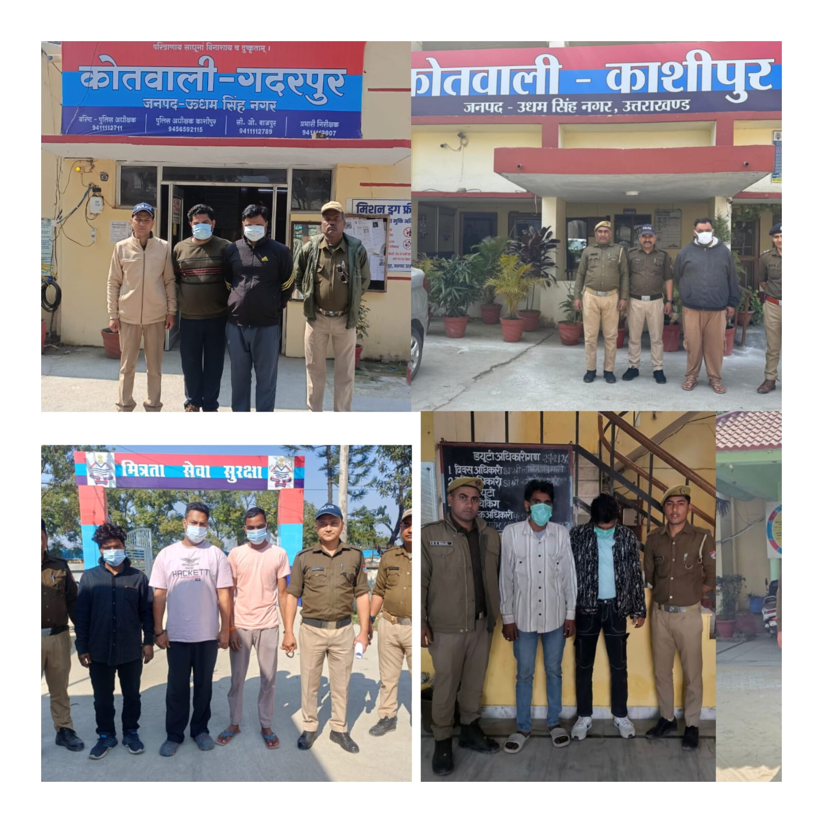 कोतवाली गदरपुर, बाजपुर, काशीपुर, पंतनगर एवं जसपुर पुलिस द्वारा वारंटियों के विरुद्ध प्रभावी कार्यवाही।