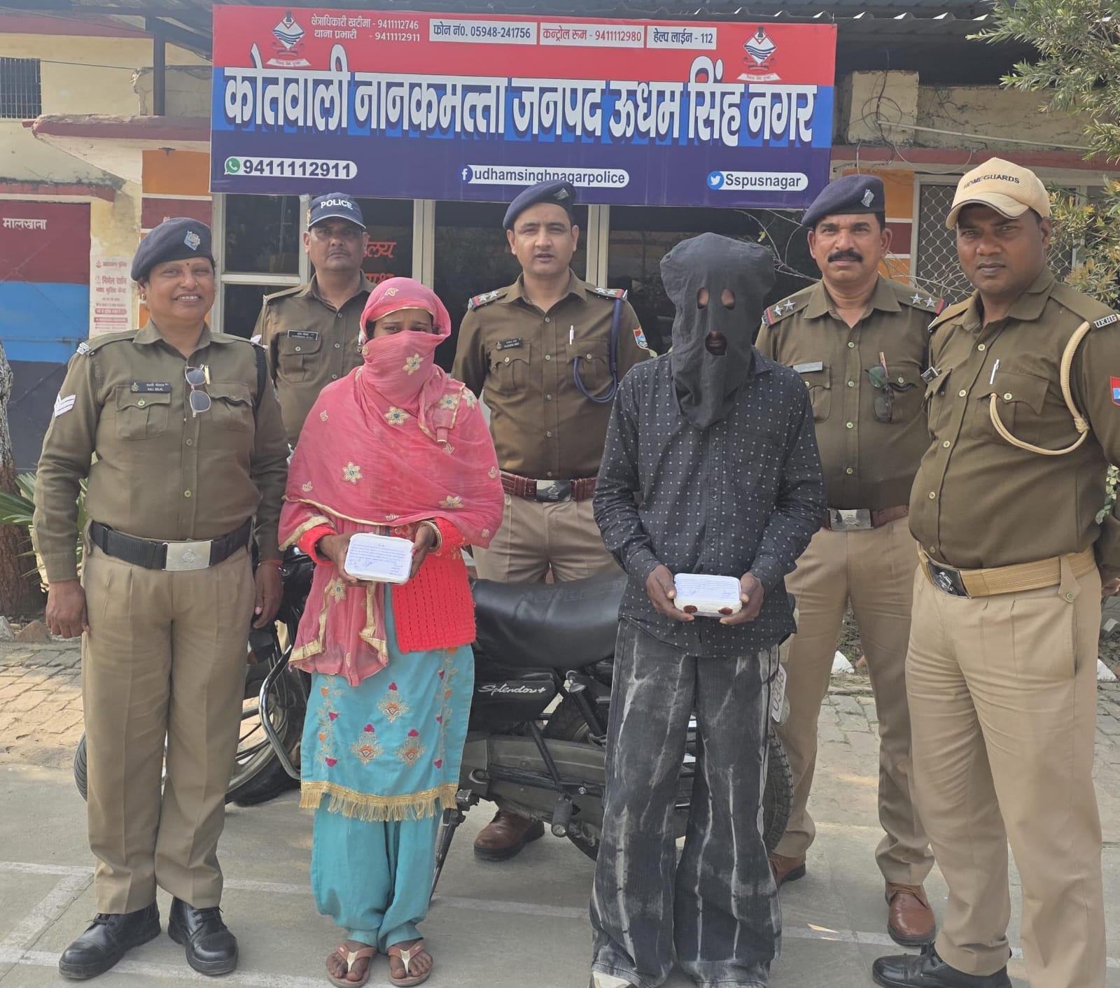 वरिष्ठ पुलिस अधीक्षक ऊधमसिंहनगर अजय गणपति के निर्देशन में जनपद में अवैध नशा तस्करों के विरुद्ध सघन अभियान चलाया जा रहा है। इसी क्रम में सायंकाल कोतवाली नानकमत्ता पुलिस टीम द्वारा चेकिंग के दौरान सिद्धा नवादिया हाईवे के पास से एक मोटरसाइकिल सवार 02 व्यक्तियों (01 पुरुष व 01 महिला) को संदिग्ध अवस्था में रोका गया।